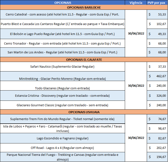 - Parque Nacional Tierra del Fuego (regular - com entrada).