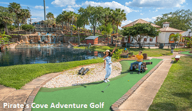Esta experiência de minigolfe leva você por cavernas, lagoas tropicais, cachoeiras e muito mais, enquanto você abre caminho para o navio do tesouro do Capitão Kidd. Uma oportunidade de aprender um pouco da história dos piratas misturada com a diversão no minigolfe.